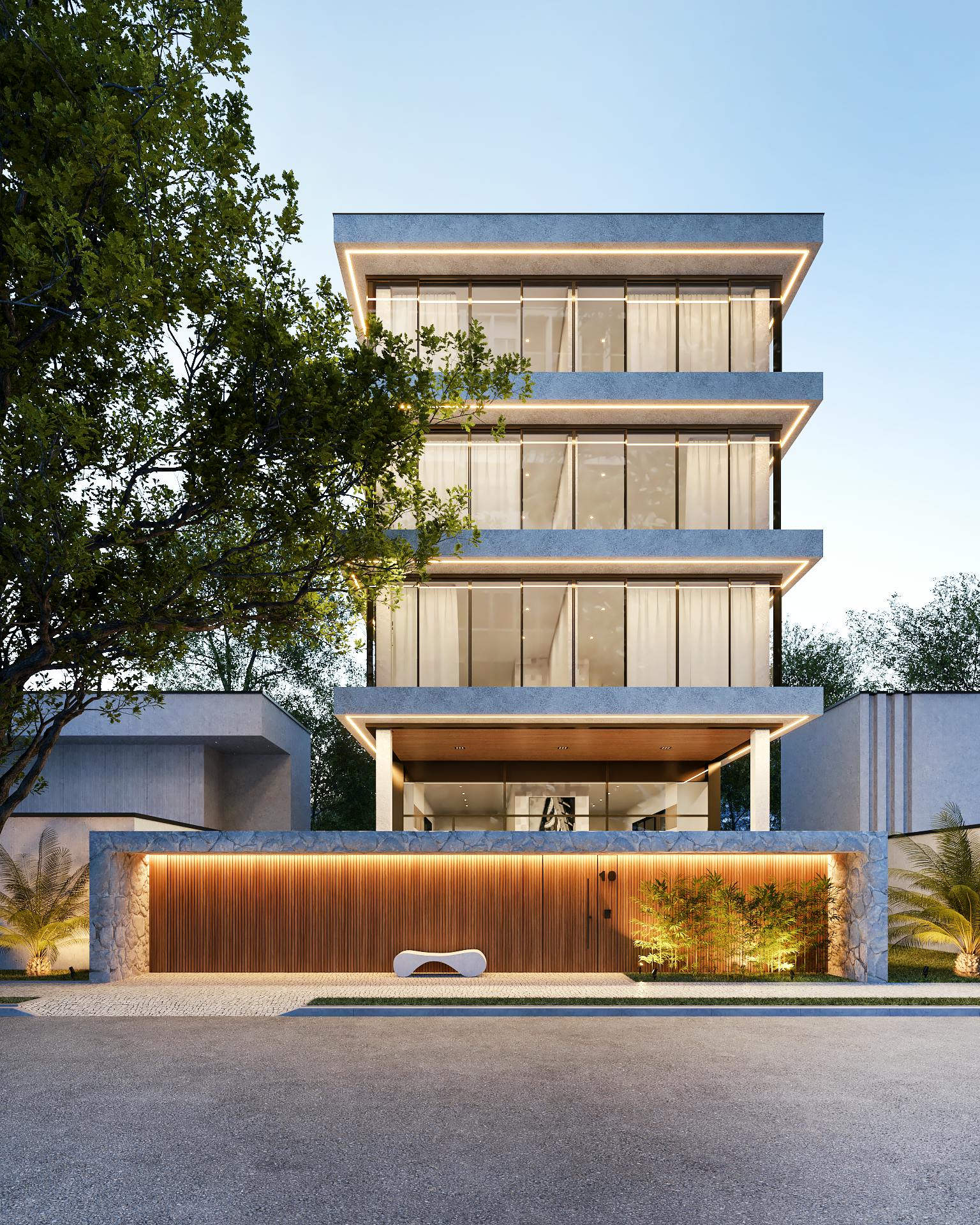 - ✅ A lógica por trás da iluminação externa realista, e criação de dois moods diferentes (Diurno e Blue hour).